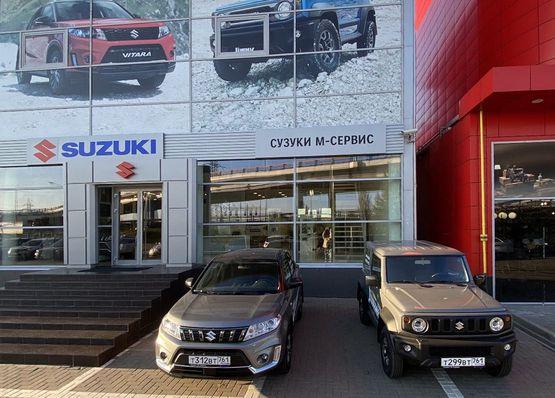 Дилерское предприятие «М-Сервис» расположено недалеко от центра Ростова-на-Дону по адресу ул. Пойменная, 1д. Общая площадь помещений дилерского центра составляет 1721 кв.м, при этом в самом шоу-руме площадью 218 кв. м представлен весь модельный ряд бренда: проходимые автомобили Suzuki Vitara и Suzuki SX4 и обладатель премии «Внедорожник года 2021» в России Suzuki Jimny.