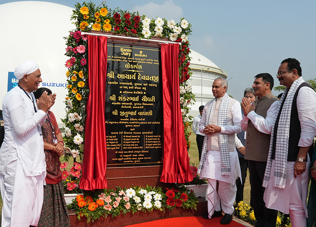На церемонии открытия биогазового завода BANAS SUZUKI BIOGAS PLANT присутствовали г-н Ачарья Девврат, губернатор штата Гуджарат, г-н Шанкар Чаудхари, председатель Banas Dairy и спикер Законодательного собрания штата Гуджарат, а также Кеничиро Тойофуку, управляющий директор и исполнительный генеральный менеджер подразделения биогаза Suzuki.